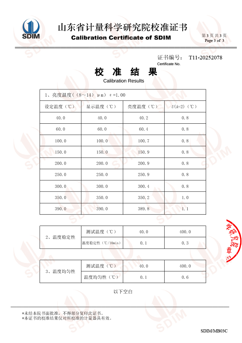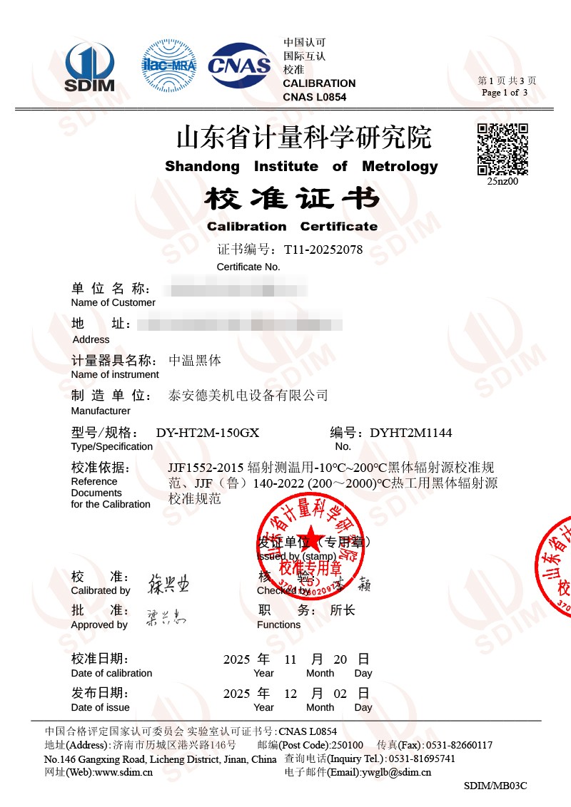 中溫黑體校準(zhǔn)證書 2025-12-4 本文被閱讀 546 次