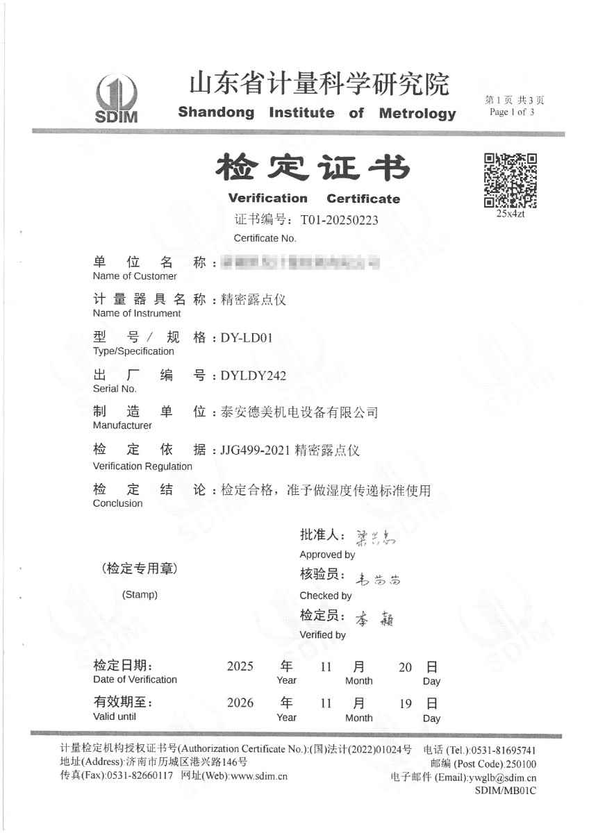 露點(diǎn)儀檢定、校準(zhǔn)證書 2025-12-4 本文被閱讀 680 次