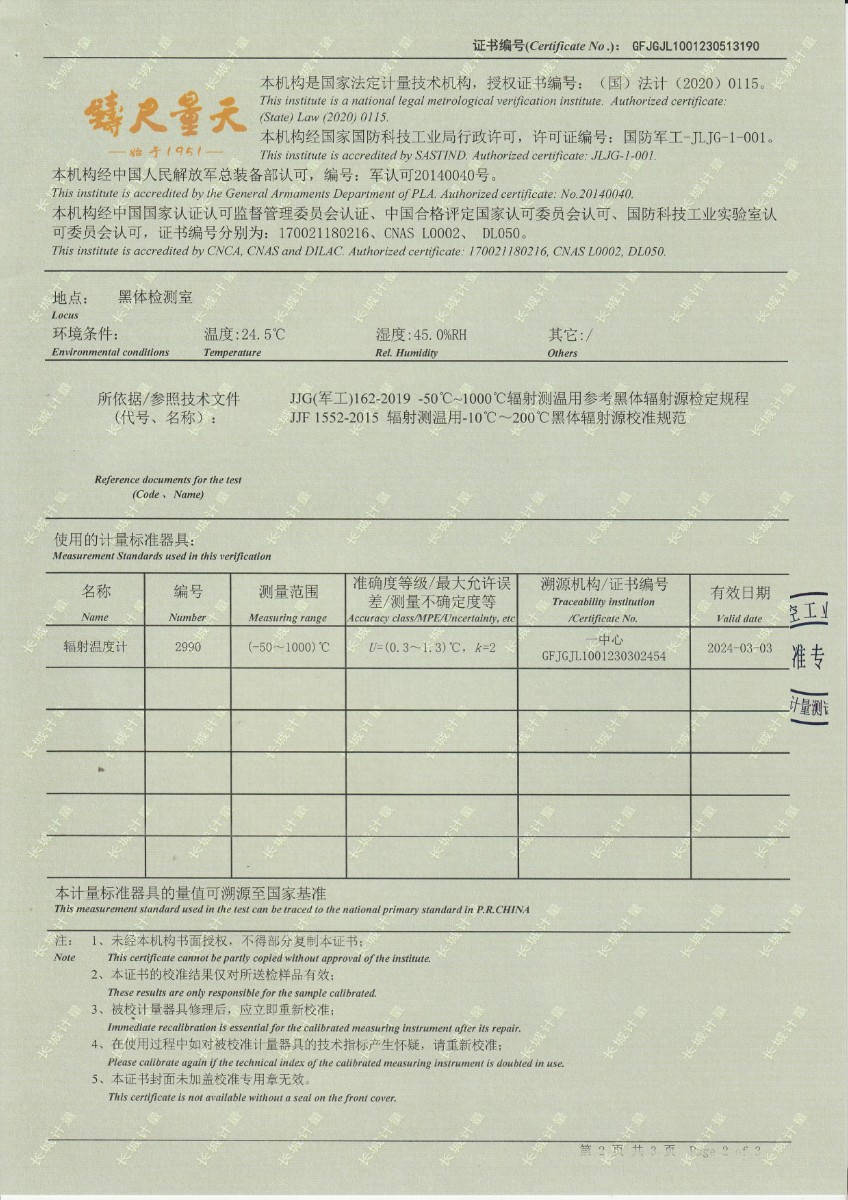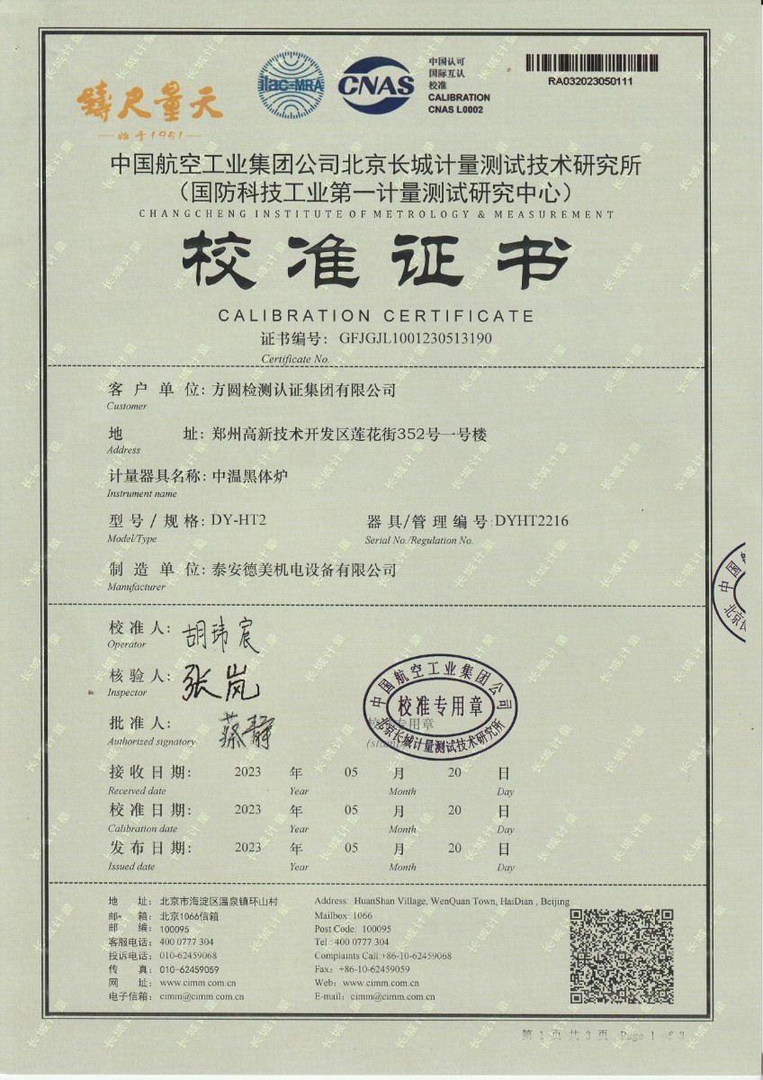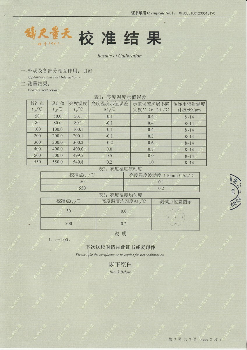 | 上一條:山東凱利布森測(cè)控技術(shù)有限公司 耳溫空腔(黑體輻射源) 校準(zhǔn)證書(shū) | 下一條:高精度制冷恒溫槽(-80~100℃)校準(zhǔn)證書(shū) |