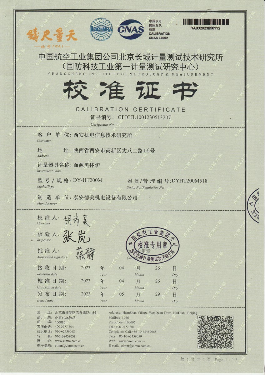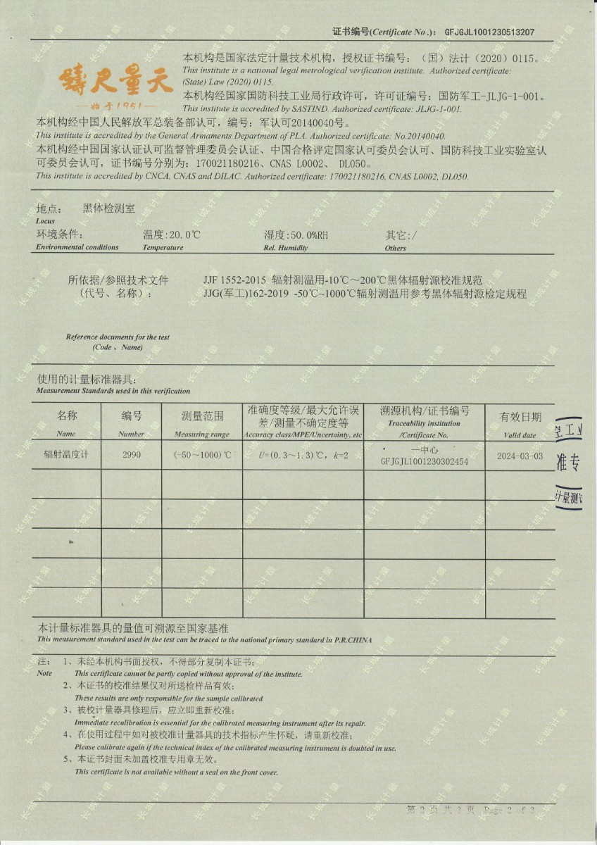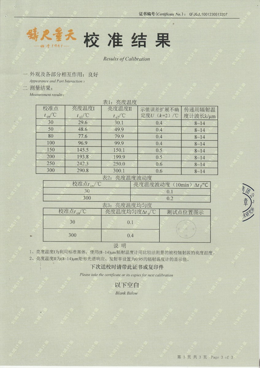 | 上一條:云南馳宏國際鍺業(yè)有限公司 面源黑體校準(zhǔn)證書 | 下一條:高精度制冷恒溫槽(-80~100℃)校準(zhǔn)證書 |
