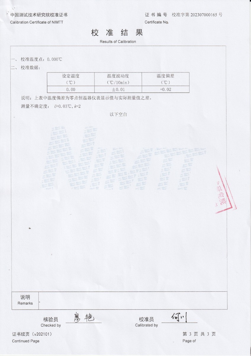 | 上一條:舟山長宏國際船舶修造有限公司-中溫干體爐 | 下一條:高精度制冷恒溫槽(-80~100℃)校準(zhǔn)證書 |