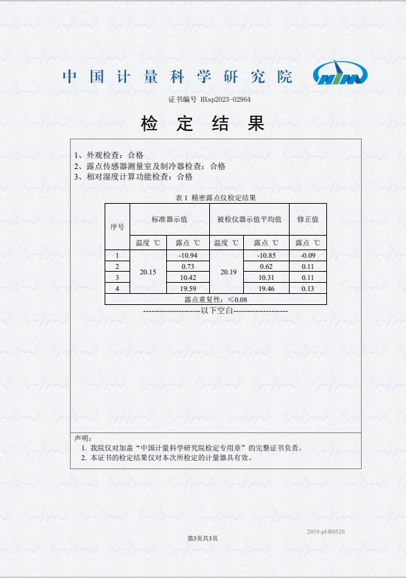 露點儀檢定證書 2023-11-9 本文被閱讀 9474 次