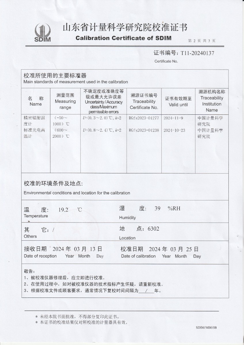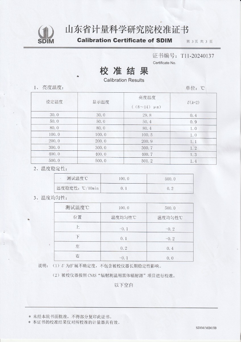 面源黑體爐校準證書 2024-3-27 本文被閱讀 6668 次