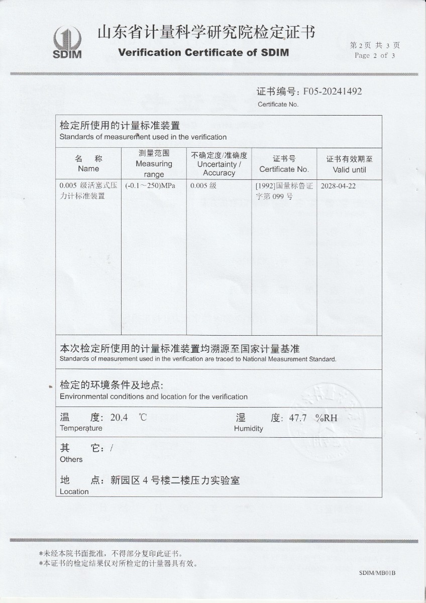 數(shù)字壓力表檢定證書 2024-4-11 本文被閱讀 6773 次