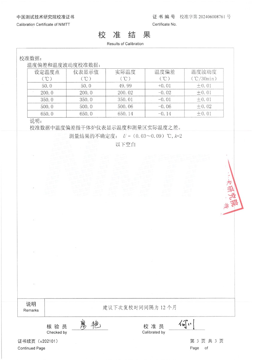 | 上一條:水三相點(diǎn)瓶校準(zhǔn)證書 | 下一條:高精度制冷恒溫槽(-80~100℃)校準(zhǔn)證書 |