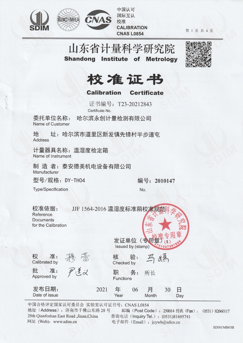 | 上一條:廣東省連平縣質(zhì)量技術(shù)監(jiān)督檢測所-溫濕度檢定箱 | 下一條:高精度制冷恒溫槽(-80~100℃)校準(zhǔn)證書 |