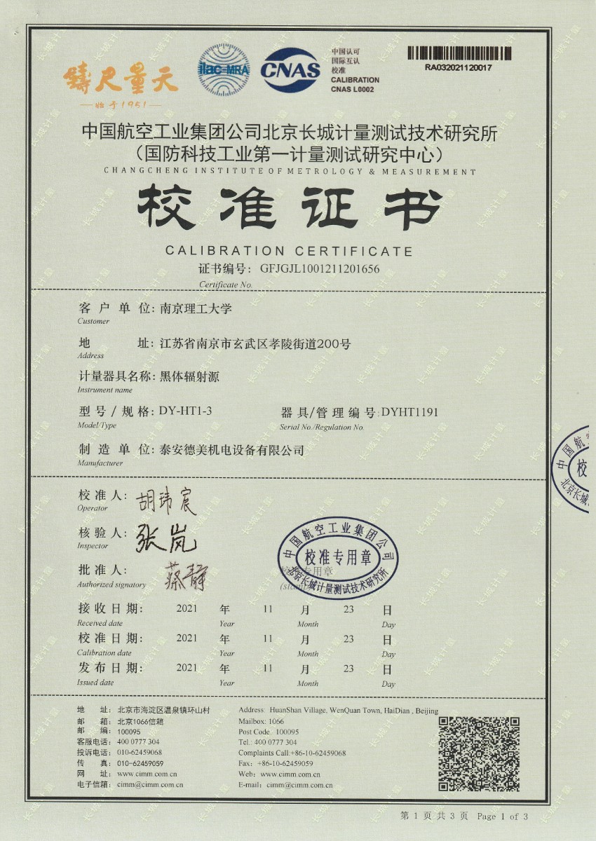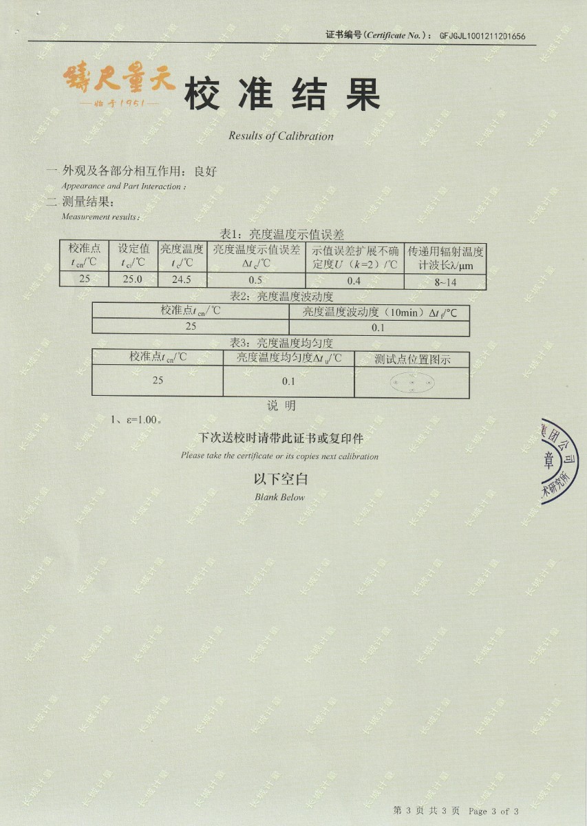 | 上一條:南京理工大學(xué)-黑體輻射源校準(zhǔn)證書10-60℃ | 下一條:高精度制冷恒溫槽(-80~100℃)校準(zhǔn)證書 |