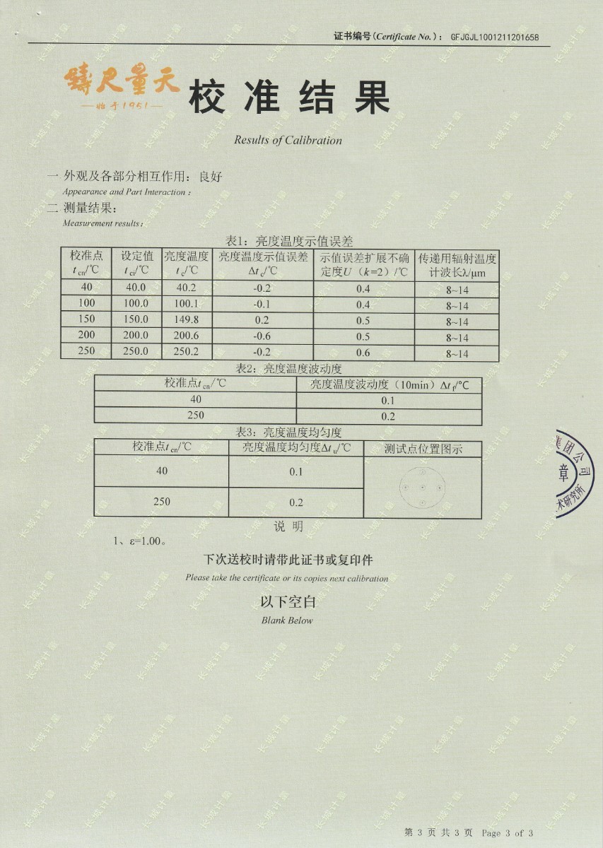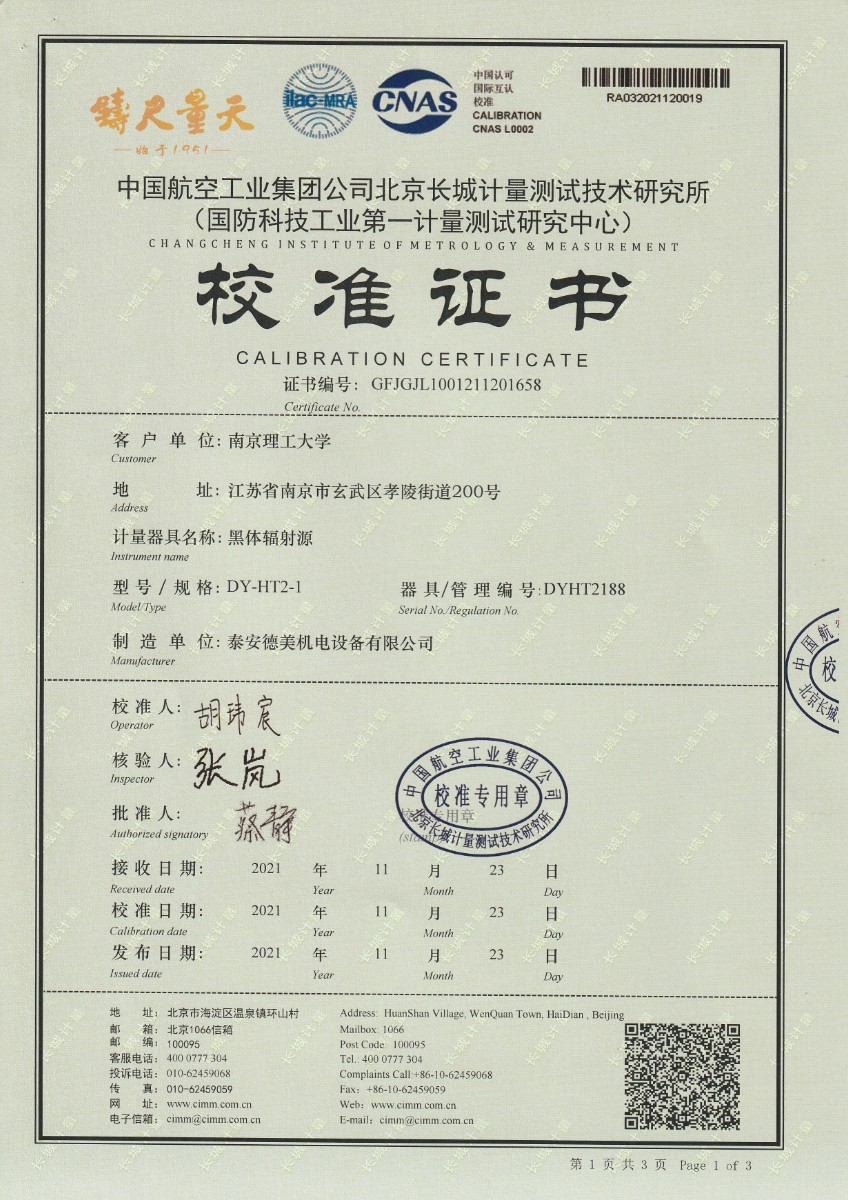 南京理工大學-黑體輻射源校準證書40-250℃ 2021-12-4 本文被閱讀 14160 次