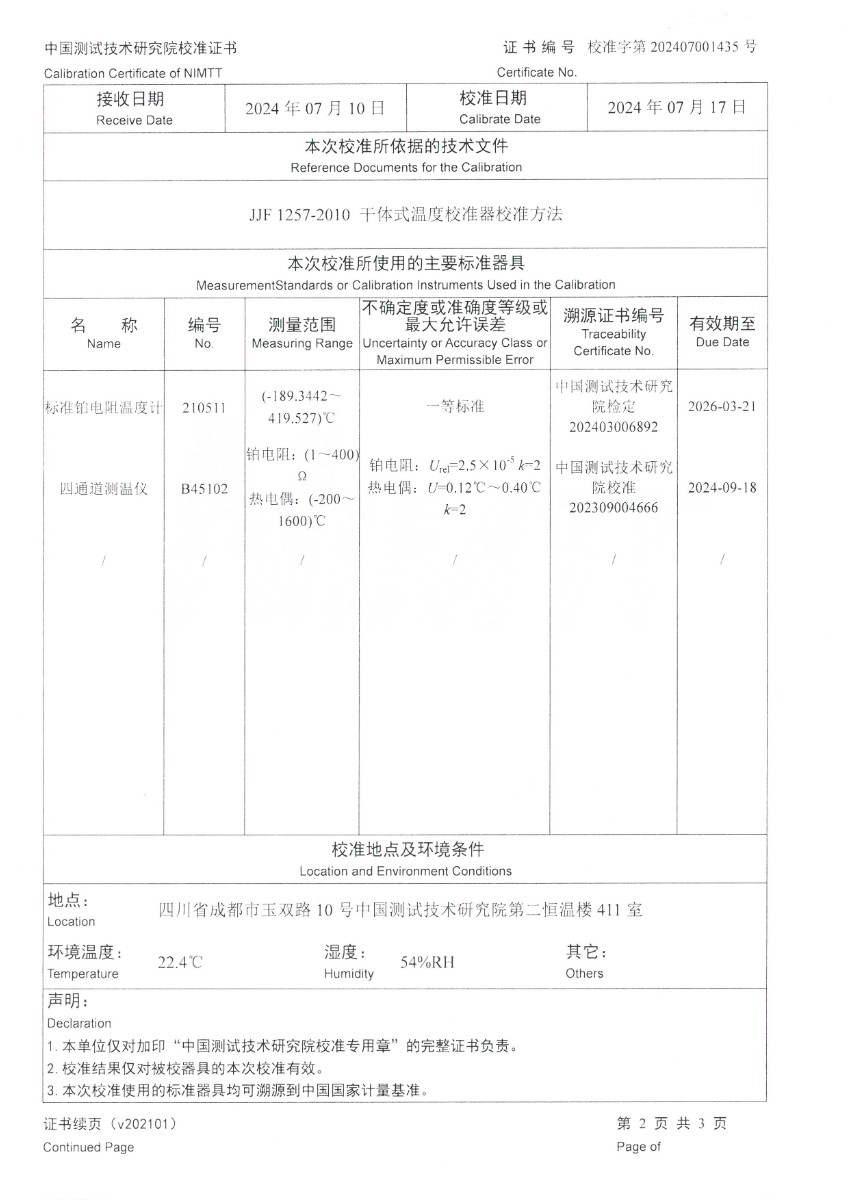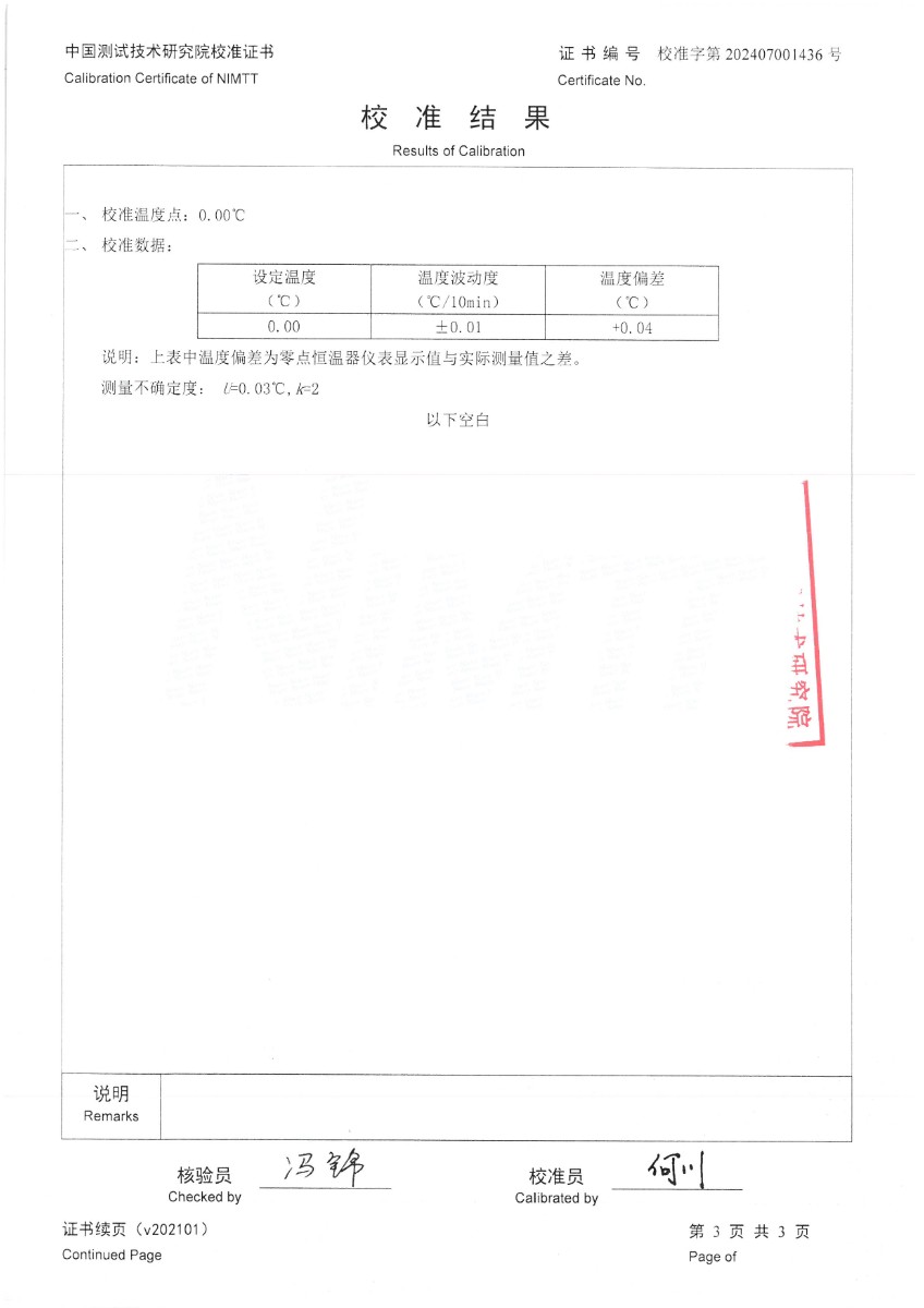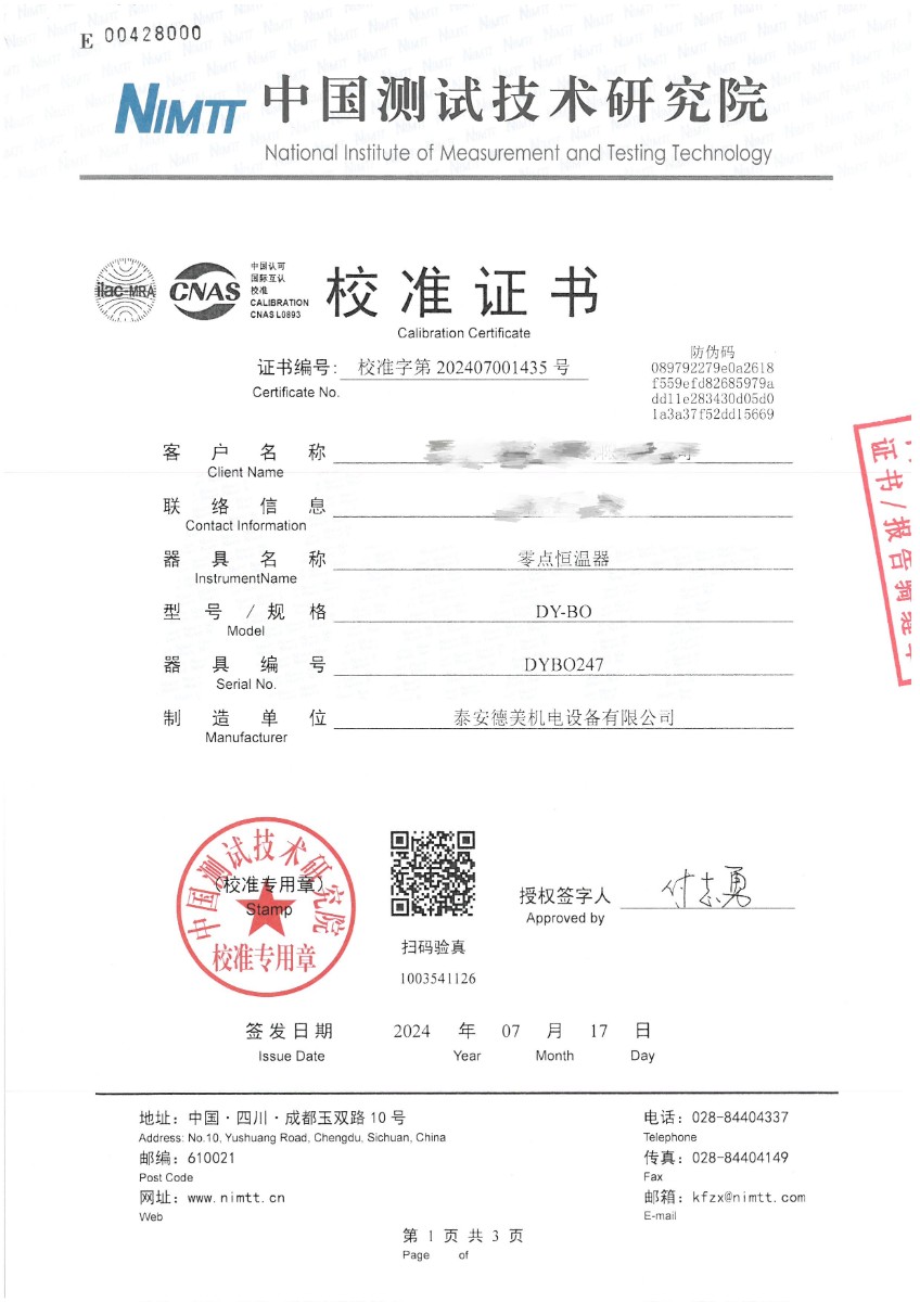 | 上一條:干體爐(300~1200)校準(zhǔn)證書(shū) | 下一條:高精度制冷恒溫槽(-80~100℃)校準(zhǔn)證書(shū) |