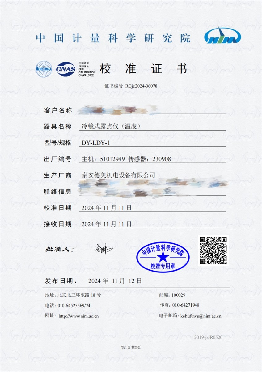 冷鏡式露點(diǎn)儀校準(zhǔn)證書 2024-11-21 本文被閱讀 7582 次