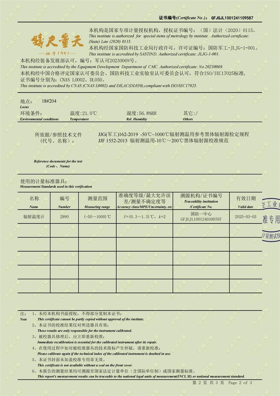 上一條:面源黑體爐校準(zhǔn)證書下一條:高精度制冷恒溫槽(-80~100℃)校準(zhǔn)證書