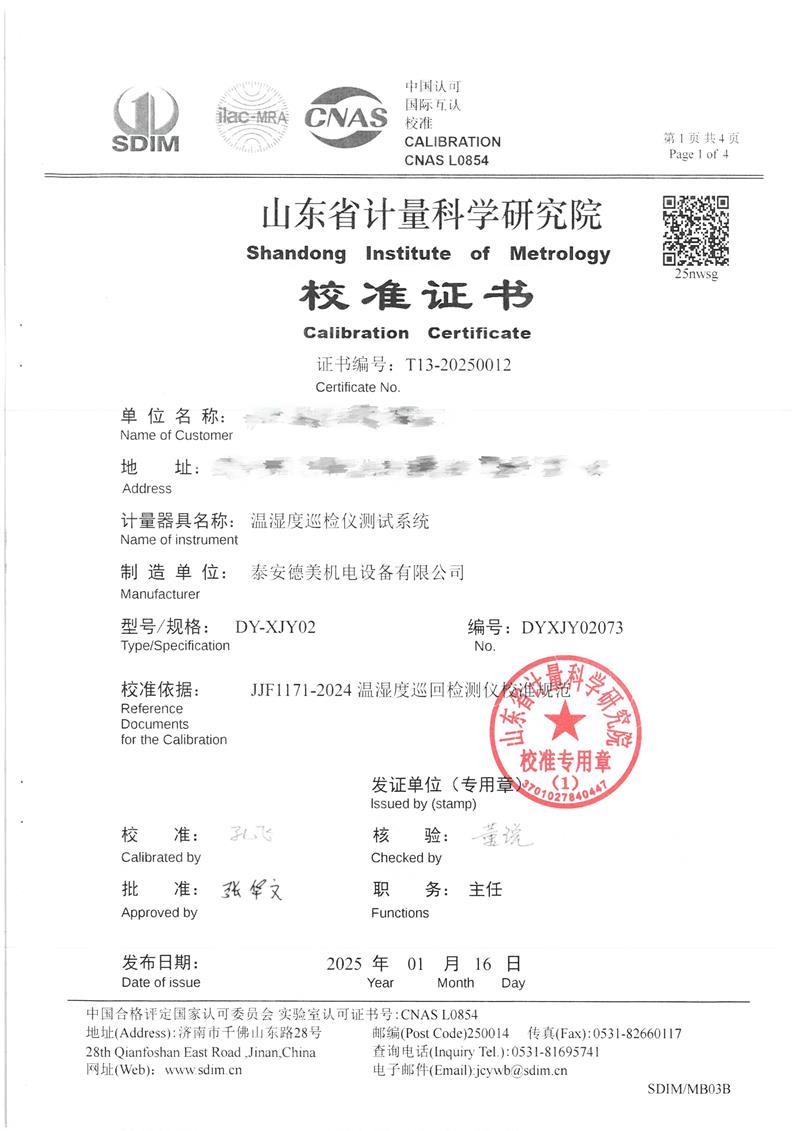 | 上一條:低溫浴式面源黑體爐(-50-80℃)校準(zhǔn)證書(shū) | 下一條:高精度制冷恒溫槽(-80~100℃)校準(zhǔn)證書(shū) |