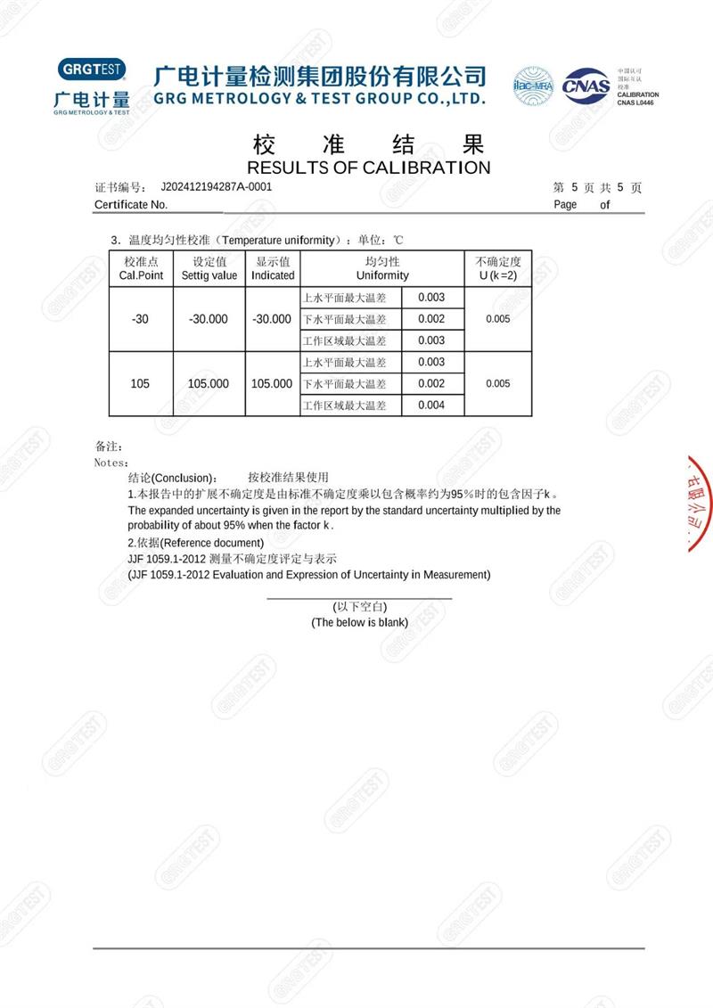 | 上一條:便攜式制冷恒溫槽(-30-105℃)校準(zhǔn)證書(shū) | 下一條:高精度制冷恒溫槽(-80~100℃)校準(zhǔn)證書(shū) |