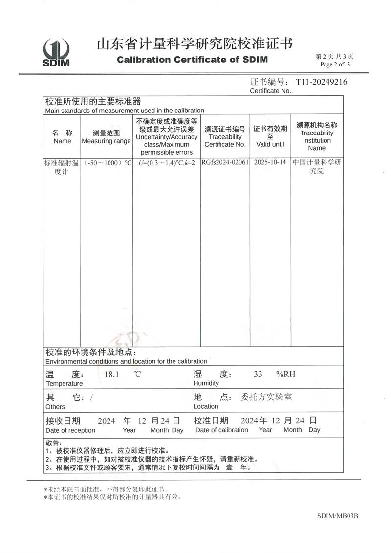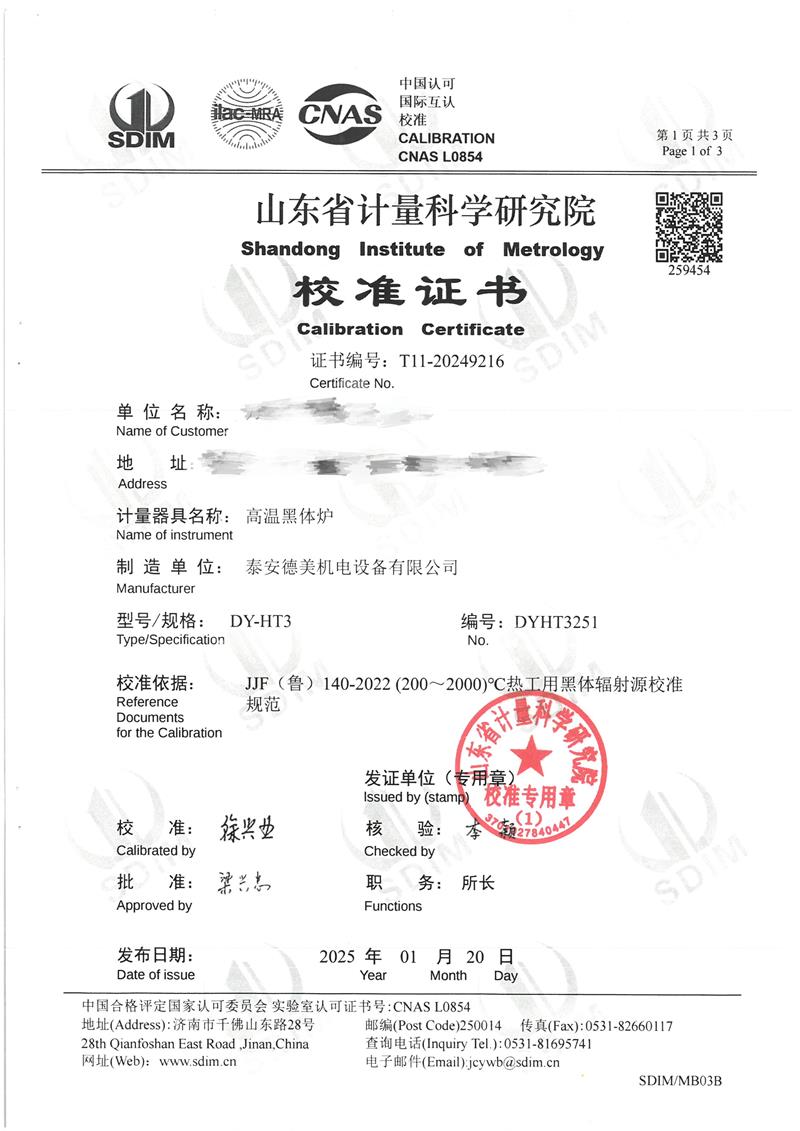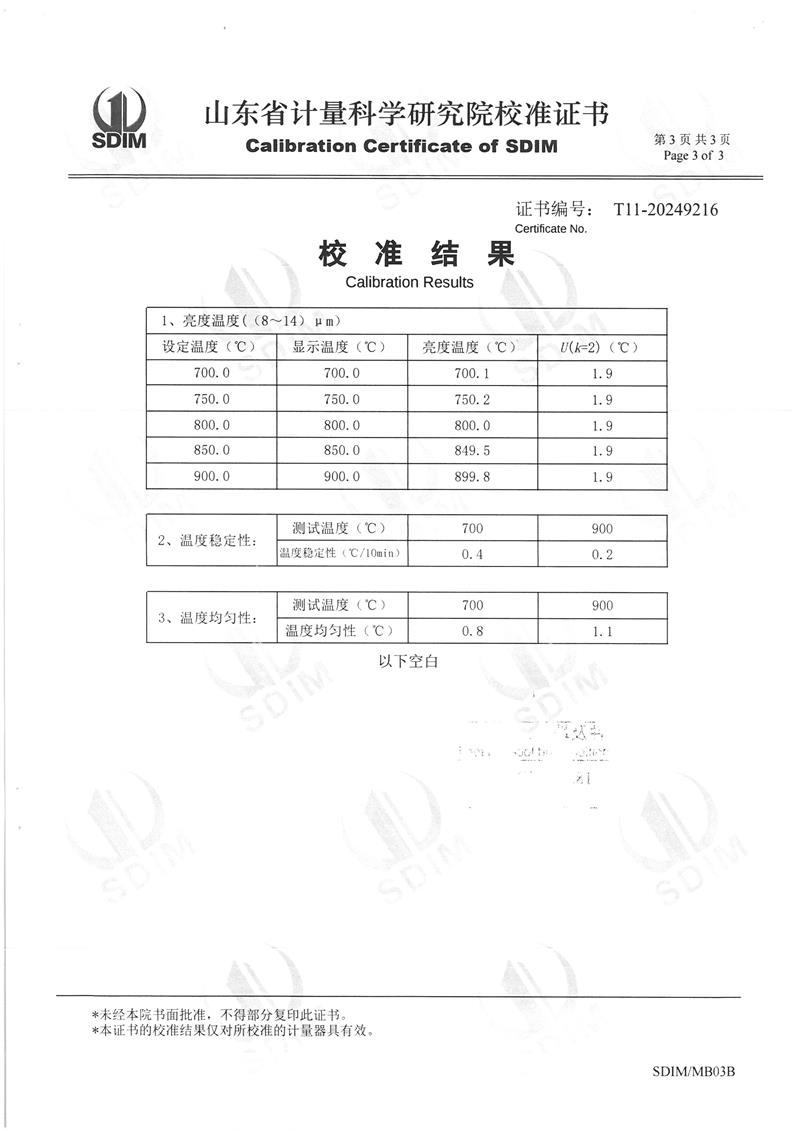 | 上一條:低溫浴式面源黑體爐(-50℃~80℃)校準(zhǔn)證書 | 下一條:高精度制冷恒溫槽(-80~100℃)校準(zhǔn)證書 |