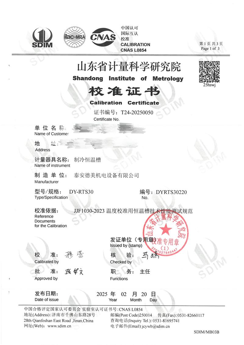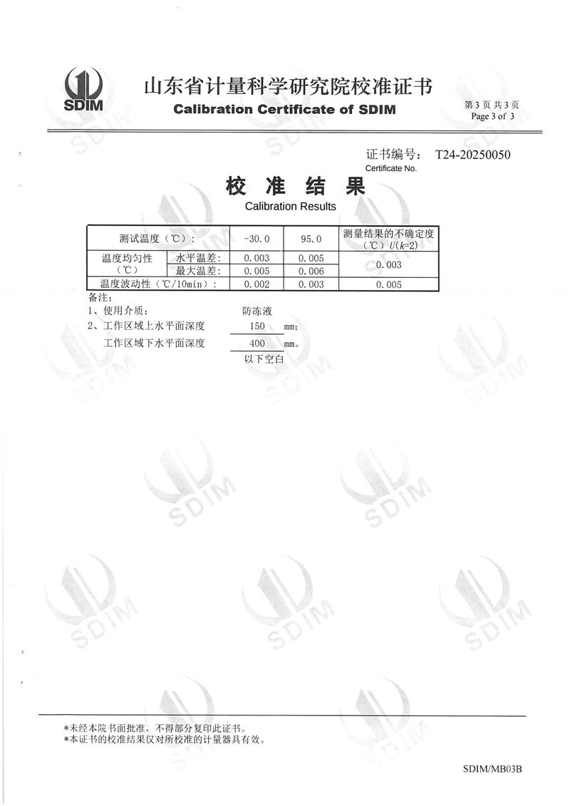 | 上一條:恒溫油槽(70~300℃)校準(zhǔn)證書 | 下一條:高精度制冷恒溫槽(-80~100℃)校準(zhǔn)證書 |