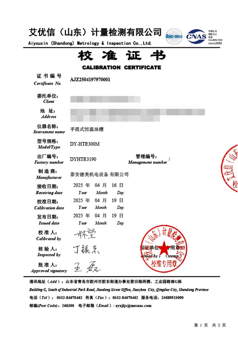 手提式恒溫油槽(70-300℃)校準證書 2025-4-29 本文被閱讀 3194 次