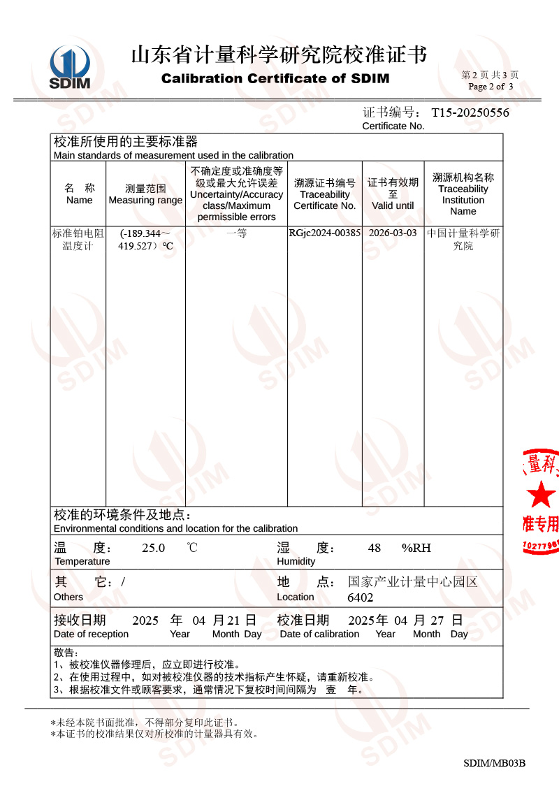 | 上一條:溫度校驗(yàn)爐(50~650℃)校準(zhǔn)證書 | 下一條:高精度制冷恒溫槽(-80~100℃)校準(zhǔn)證書 |