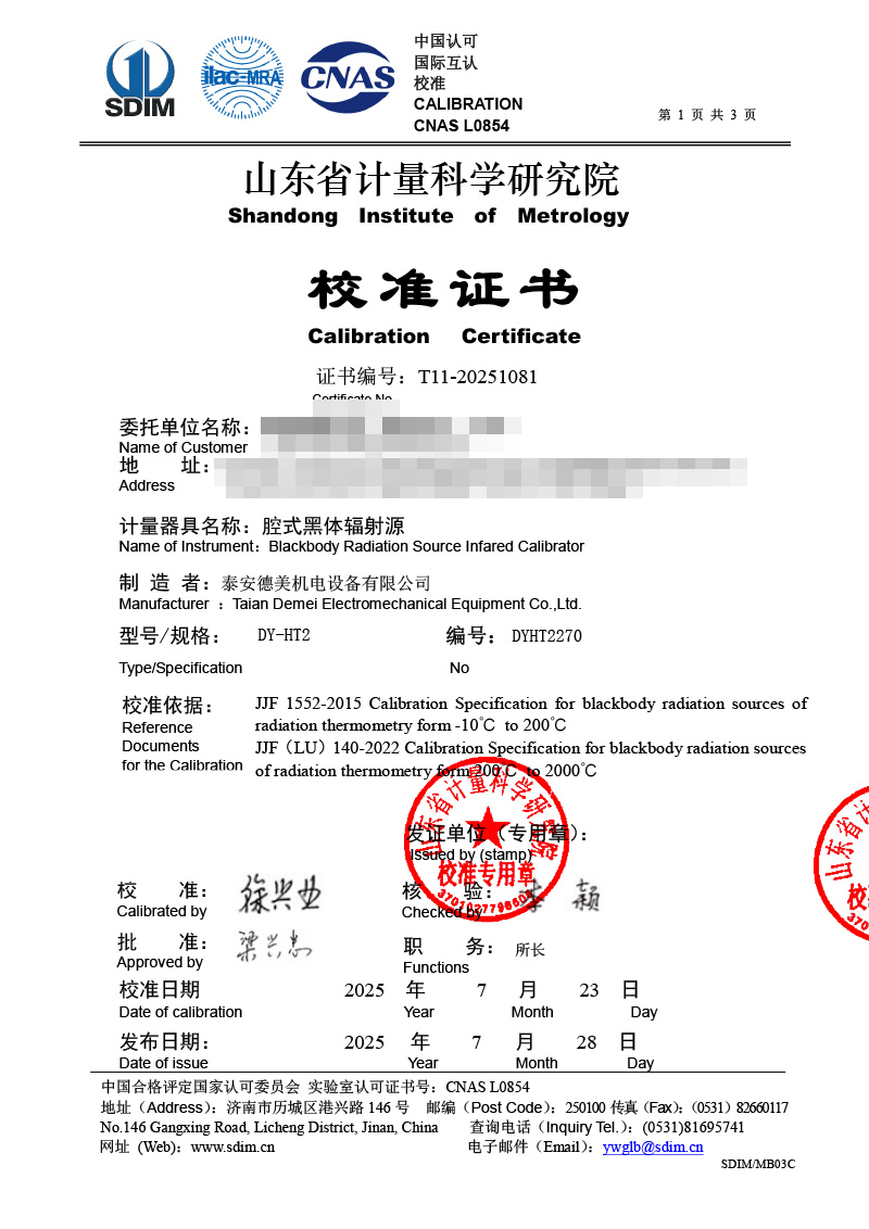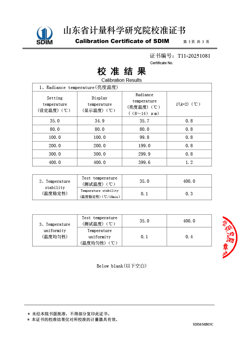 | 上一條:低溫面源黑體爐(0-60℃)校準(zhǔn)證書(shū) | 下一條:高精度制冷恒溫槽(-80~100℃)校準(zhǔn)證書(shū) |