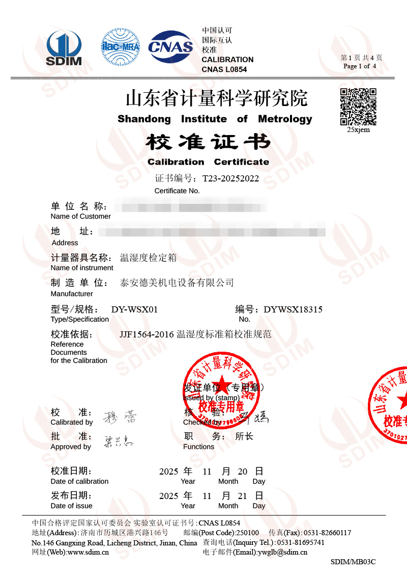 溫濕度檢定箱校準(zhǔn)證書 2025-11-25 本文被閱讀 946 次