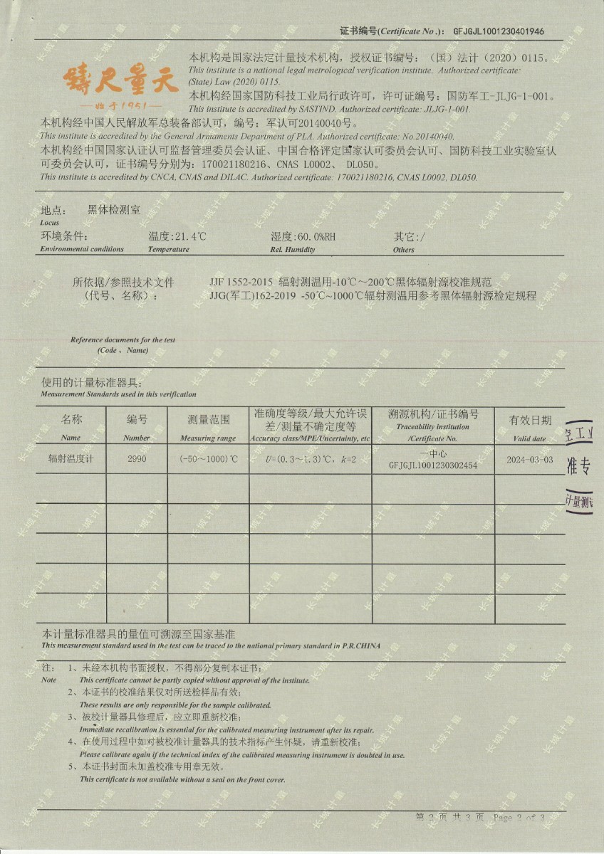 上一條:無錫英菲感知技術(shù)有限公司 高溫黑體 校準證書(1)下一條:高精度制冷恒溫槽(-80~100℃)校準證書