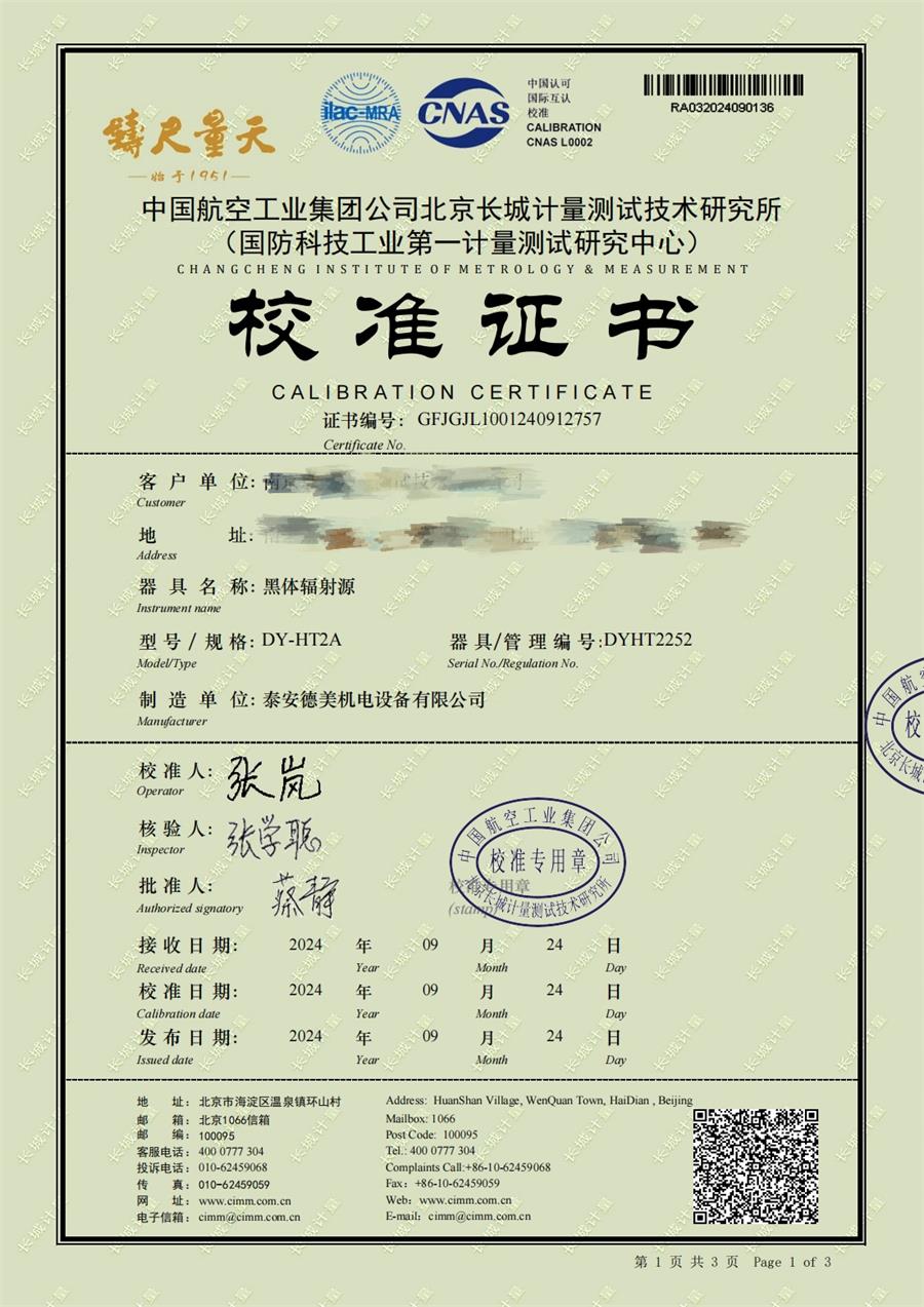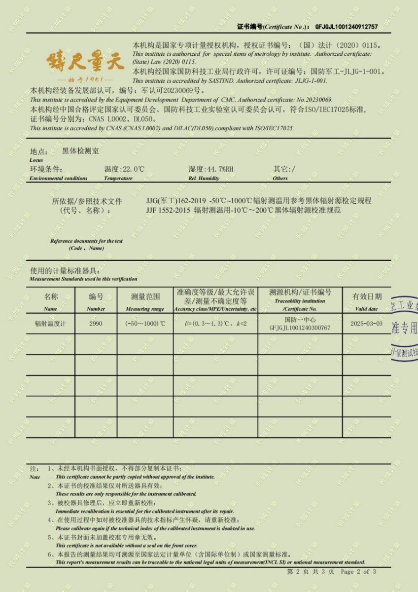 黑體輻射源(50-700℃)校準(zhǔn)證書(shū) 2024-10-17 本文被閱讀 6205 次