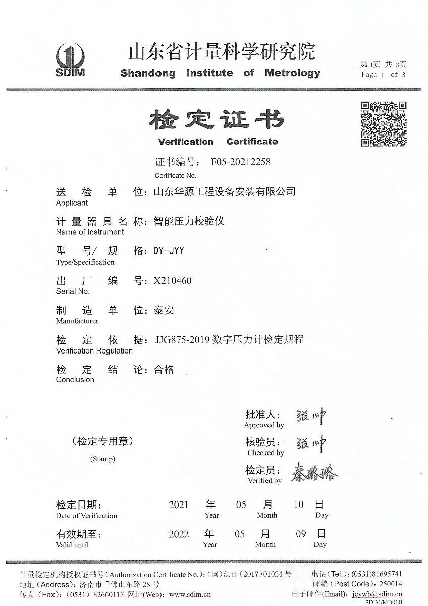 | 上一條:山東華源工程設(shè)備安裝有限公司-智能壓力校驗(yàn)儀X210459 | 下一條:高精度制冷恒溫槽(-80~100℃)校準(zhǔn)證書 |