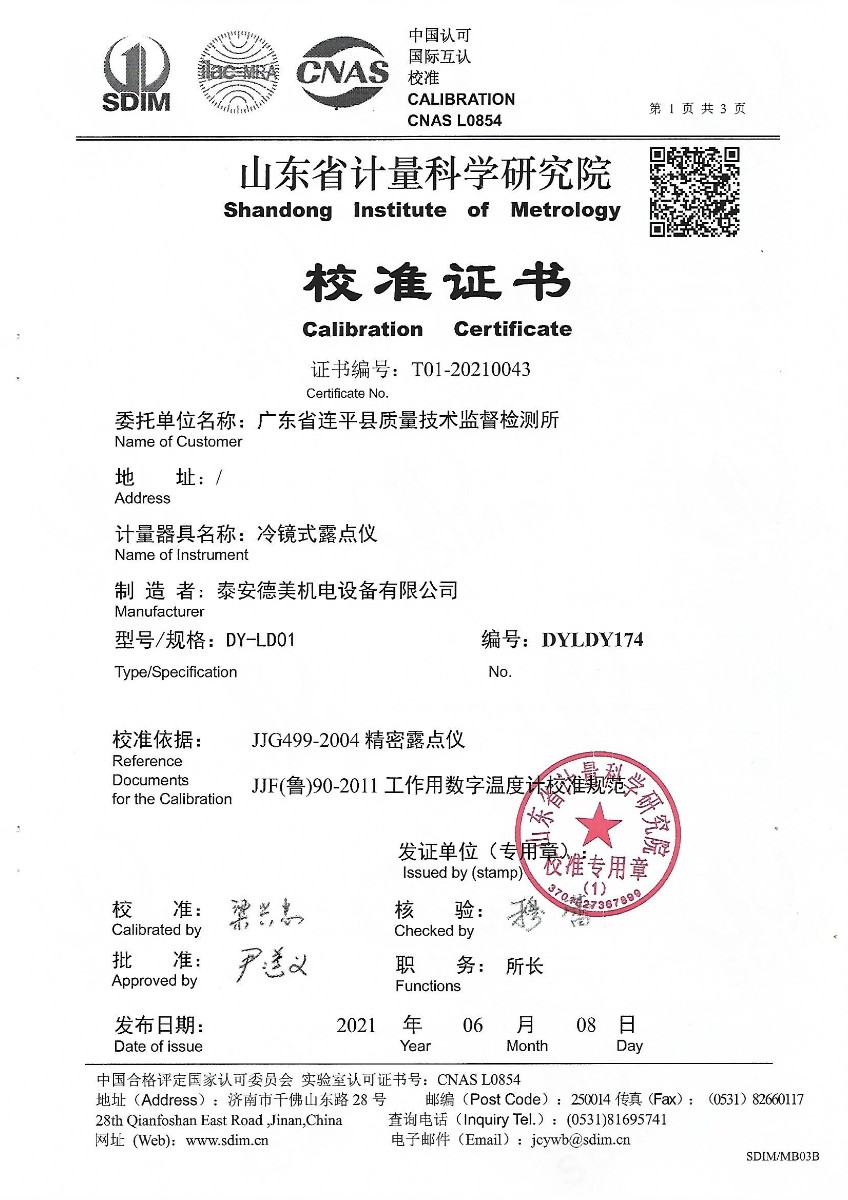 廣東省連平縣質(zhì)量技術監(jiān)督檢測所-冷鏡式露點儀 2021-6-10 本文被閱讀 15735 次