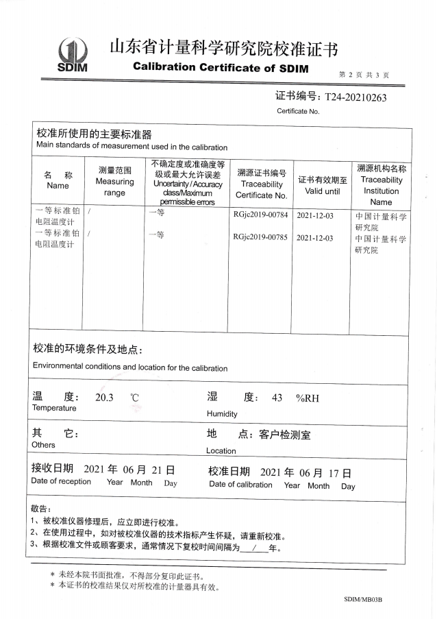 | 上一條:曹縣百通宏達熱力有限公司-數(shù)字壓力校驗儀 | 下一條:高精度制冷恒溫槽(-80~100℃)校準證書 |