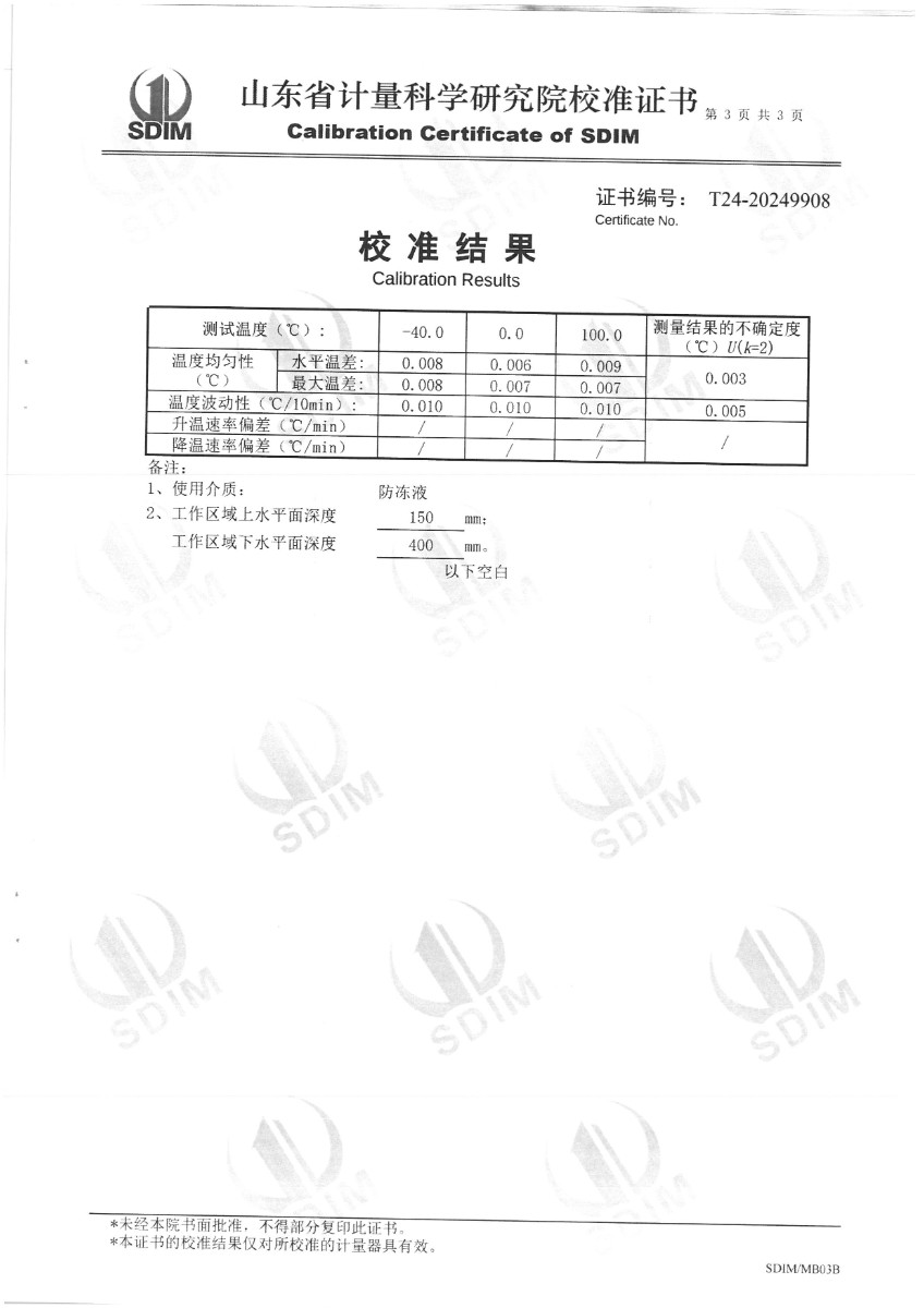 | 上一條:耳溫空腔(黑體輻射源)校準(zhǔn)證書 | 下一條:高精度制冷恒溫槽(-80~100℃)校準(zhǔn)證書 |