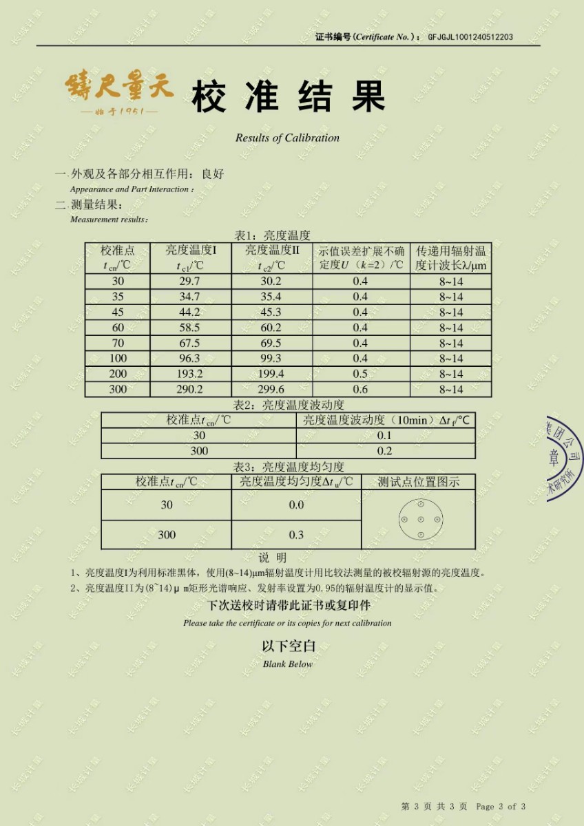 | 上一條:面源黑體爐校準(zhǔn)證書(shū) | 下一條:高精度制冷恒溫槽(-80~100℃)校準(zhǔn)證書(shū) |