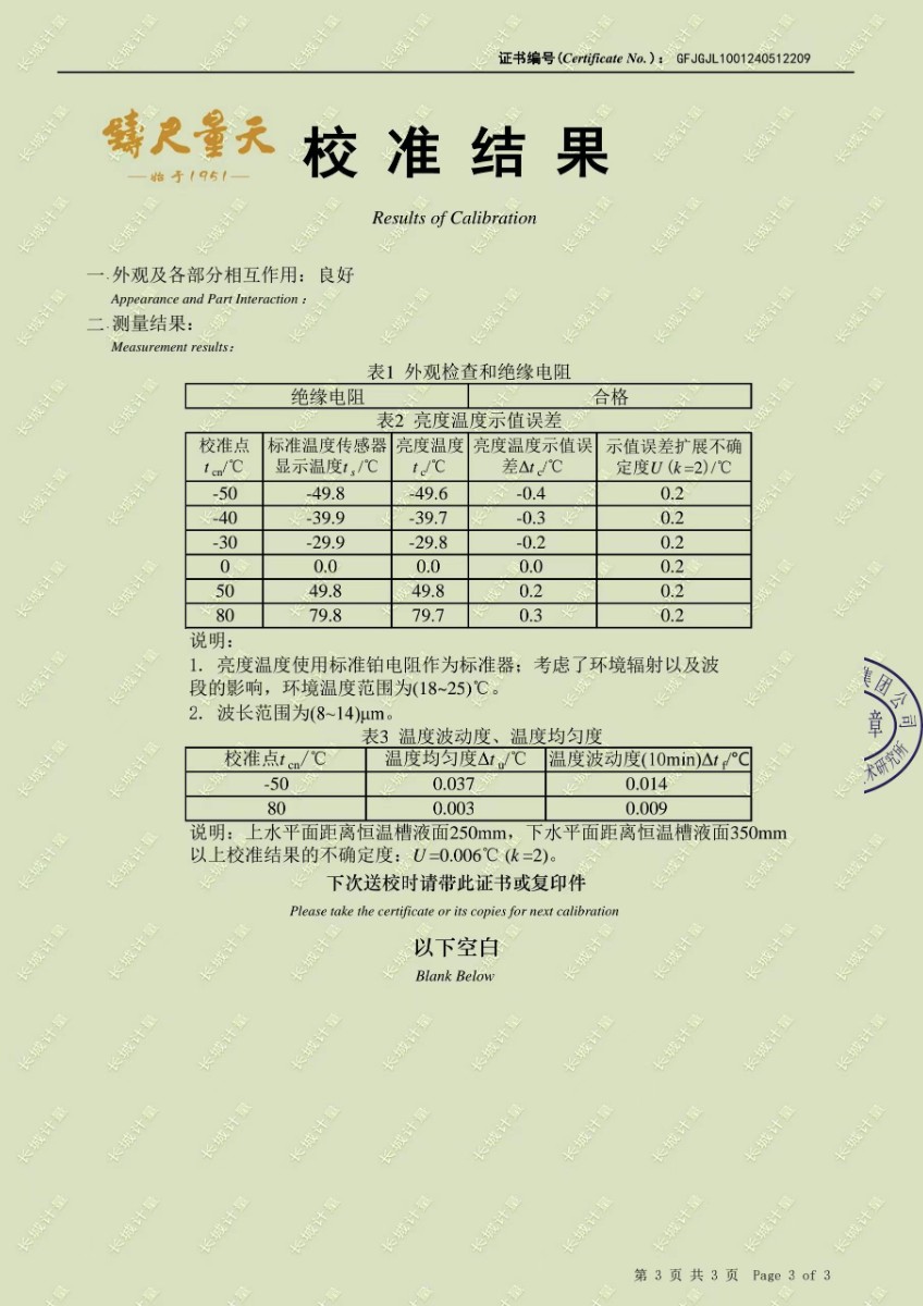 低溫浴式黑體輻射源校準(zhǔn)證書 2024-5-31 本文被閱讀 8597 次